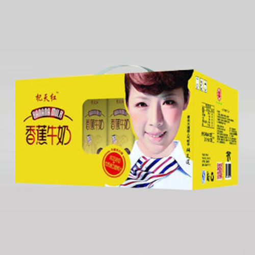 孟州歡樂(lè)多飲品有限公司主打產(chǎn)品杞天紅香蕉牛奶箱。