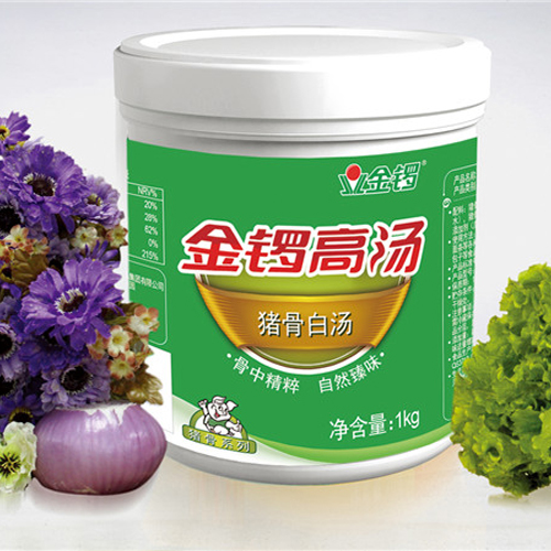 采用經(jīng)檢驗檢疫合格的豬骨為主要原料,經(jīng)破碎、高溫蒸煮、真空濃縮、調(diào)配、高壓均質(zhì)乳化等工藝精制而成。骨湯充分保留了骨肉特有的蛋白、鈣等營養(yǎng)成分,稀釋后呈乳白色,色澤悅?cè)?,底香味濃郁,產(chǎn)品未添加任何防腐劑。可廣泛應(yīng)用于火鍋連鎖、餛飩、米線等餐飲店,調(diào)味品生產(chǎn)企業(yè),方便面生產(chǎn)企業(yè)等。