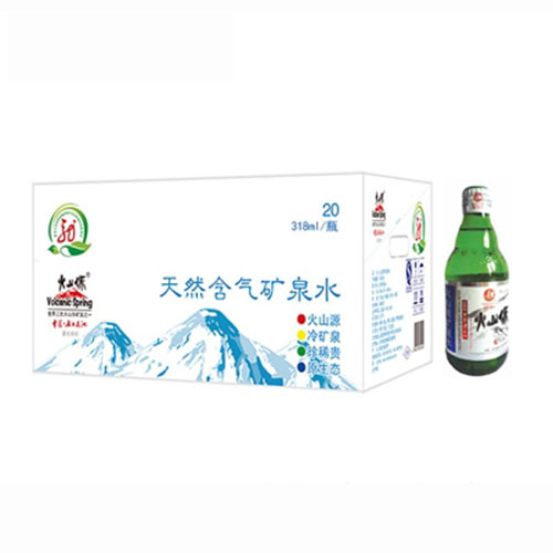 火山源天然含氣重碳酸礦泉水綠玻璃瓶318ml