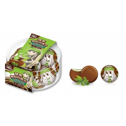 可味抹茶夾心棋子圓形全透明塑盒巧克力80克10粒