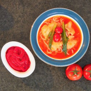 是以加工番茄為原料,經(jīng)清洗、破損、預(yù)熱、打漿、去皮去籽、濃縮后不加任何調(diào)味劑,通過高溫殺菌后,灌裝制成的200L鋼桶和噸箱包裝的番茄醬產(chǎn)品。
