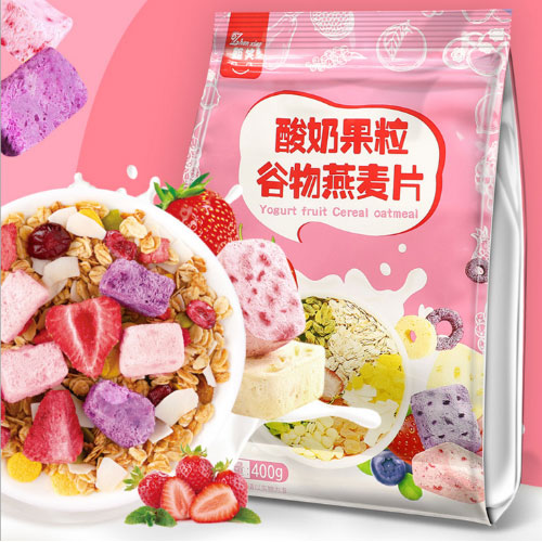 甄笑紫色酸奶水果烘焙凍干草莓麥片400g