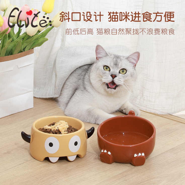 伊麗卡通怪獸斜口陶瓷寵物碗