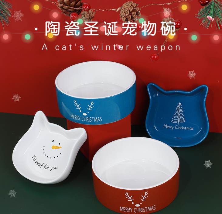 伊麗Elite新款圣誕陶瓷貓碗