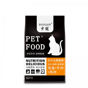河南邦寵寵物用品有限公司主打產(chǎn)品步冠全價(jià)貓糧5斤。