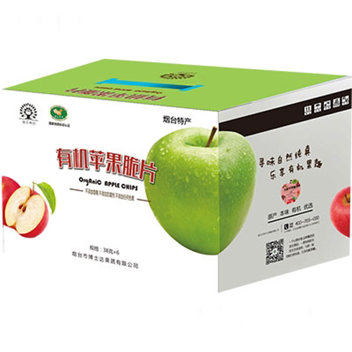 煙臺市博士達果蔬有限公司主打產(chǎn)品音樂果園有機蘋果脆片箱38gx6桶。