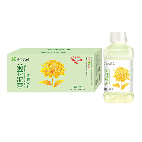 河南協(xié)力食品有限公司主打產(chǎn)品協(xié)力菊花涼茶植物飲料470mlx15瓶。