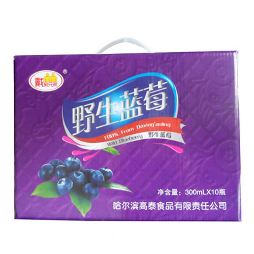 哈爾濱高泰食品有限責(zé)任公司主打產(chǎn)品野生藍(lán)莓汁手提禮盒。
